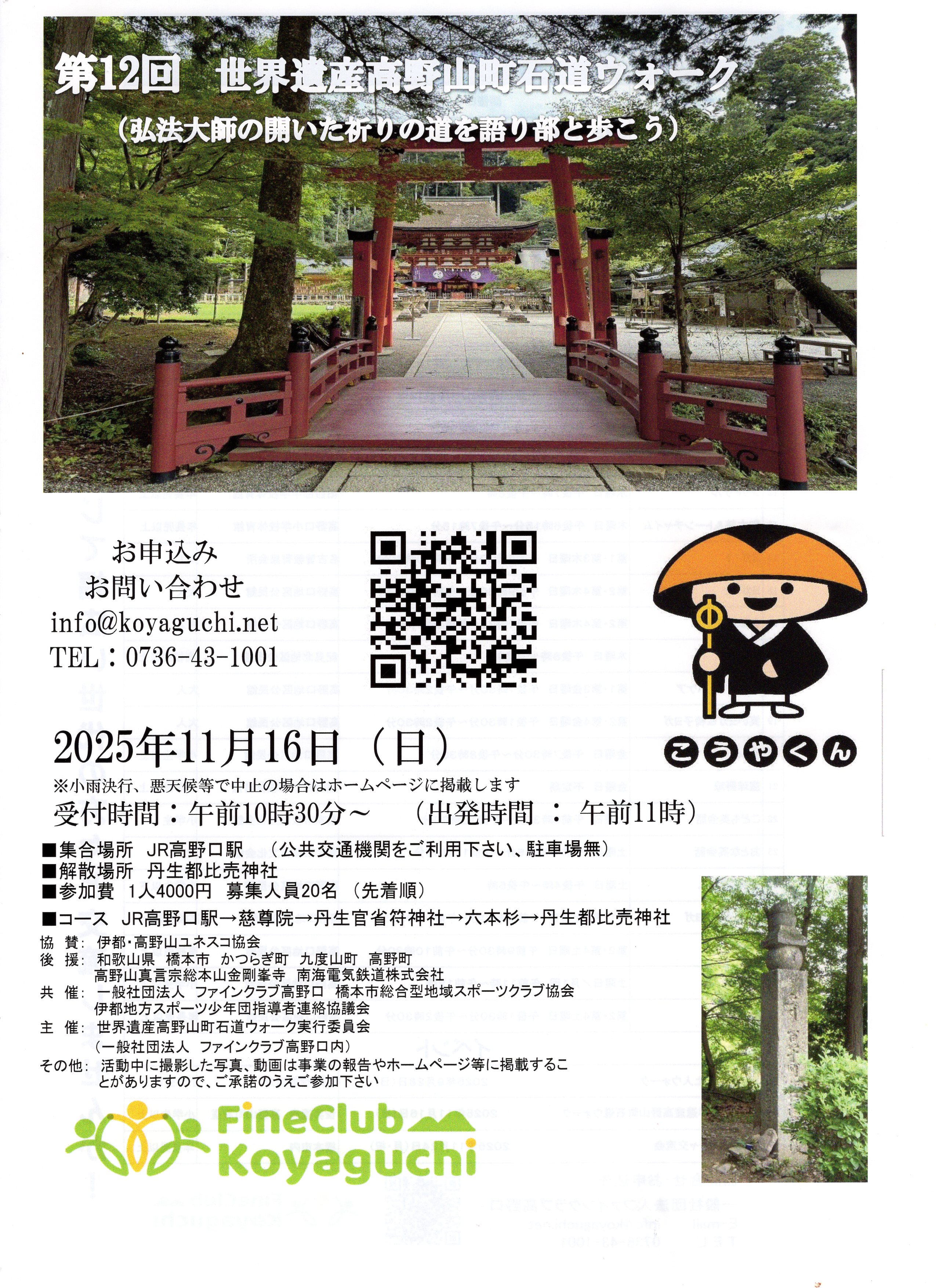 お問い合わせ世界遺産高野山町石道ウォーク実行委員会(一般社団法人ファインクラブ高野口内)
